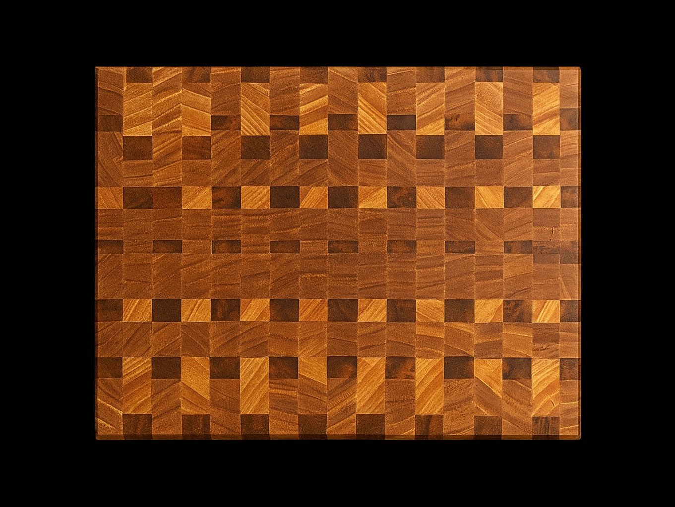 Il tagliere in controfibra (o end grain) è il “fuoriclasse” dei taglieri. È più complesso da realizzare, ma offre prestazioni tecniche superiori, soprattutto per chi tiene molto ai propri coltelli.